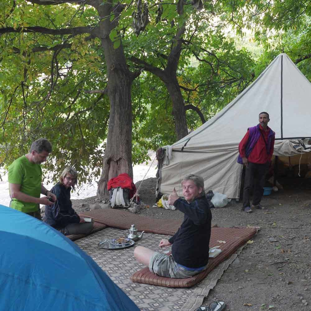 Efter en natts tältning väntar vandring i Atlasbergen