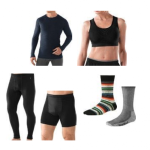 håll dig till den. Närmast kroppen är vår starka rekommendation att du använder plagg av merinoull, ull eller syntet. Vår absoluta favorit är merinoullen som är mjuk och skön mot huden. Den transporterar bort fukt och kyler dig när det är varmt, samtidigt som den värmer när det är kallt. Dessutom tar den inte åt sig lukt — helt fantastisk! För bättre slitstyrka kan det vara bra att kombinera merinoull eller ull med syntetfiber. Det är bra i exempelvis strumpor, som har ett högt slitage. Tänk på att även trosor/kalsonger och bh/sporttopp bör vara i ull,  brukar finnas hos välsorterade friluftsbutiker som Naturkompaniet.