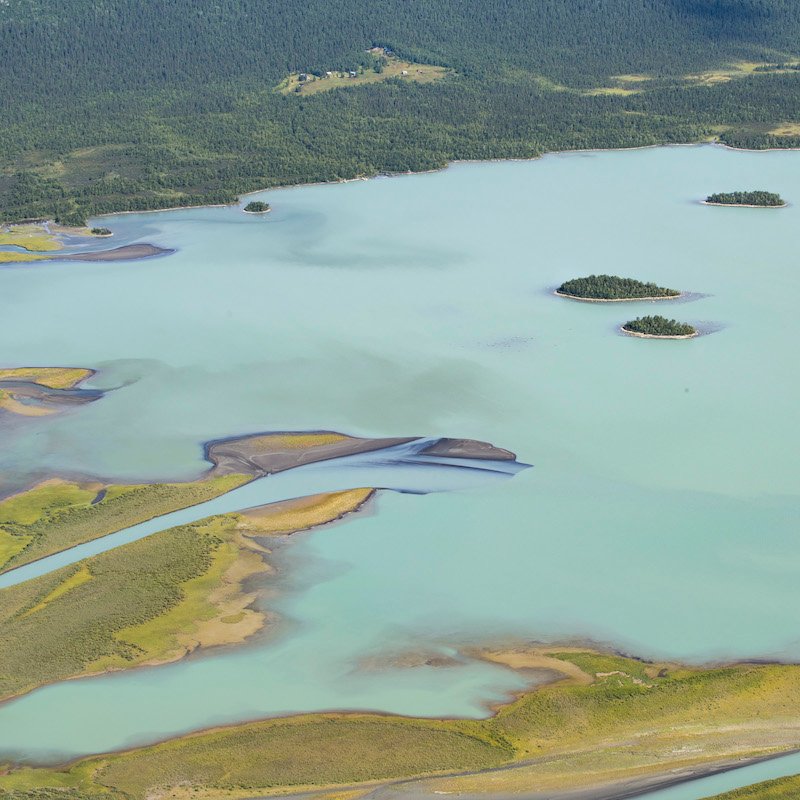 Framme nere vid strandkanten i Svijnne har vi vandrat färdigt för idag. Nu blir vi mötta av Anna eller Lars Blind, beroende på vem av dem som kommer med båten för att plocka upp oss. Vi får glida fram över vattnet de sista fyra km för dagen och blir avsläppta vid dagens slutmål Sitojaurestugorna. Här är det dags för en festmåltid i form av klassisk Samisk Souvas, givetvis serverat i brödet Gahkku. Kultur och god mat i ett!