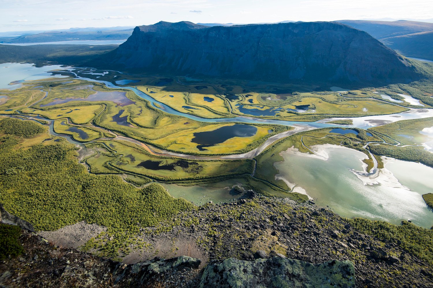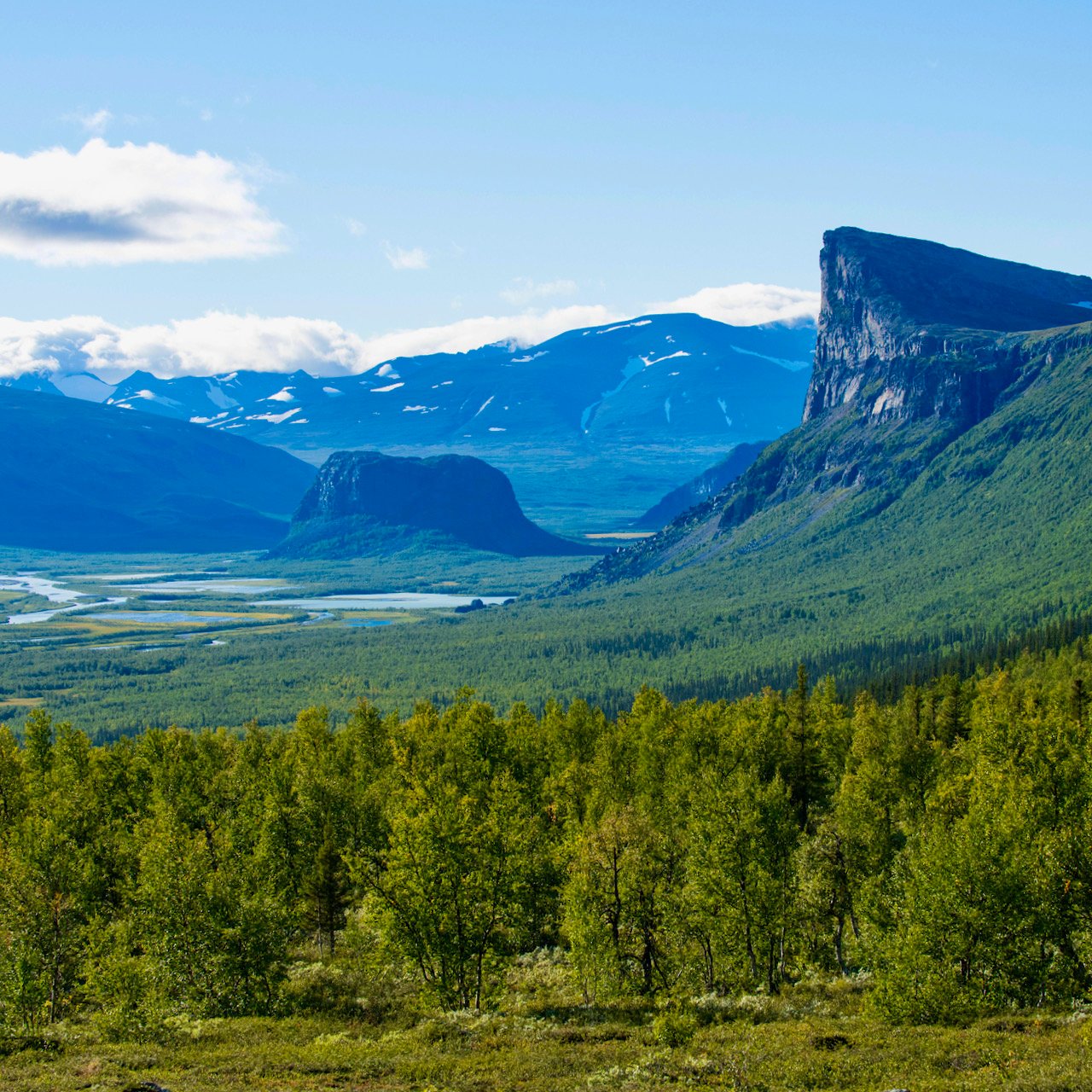 Det är 7,5km till toppen och 770m stigning. En härlig utmaning med fantastisk belöning! På toppen känns världen stor och mäktig. 700m lodrät klippa ned till botten av Rapadalen och deltat som breder ut sig nedanför. En tår i ögat är inte ovanligt och vid god sikt ser vi långt in i Sarek. Bergstopparna, glaciärerna, älvar och jokkar. En ikonisk plats med kanske den allra finaste utsikten i hela fjällvärlden. Efter en stund på toppen vänder vi ned till Aktse igen och firar vår upplevelse tillsammans.